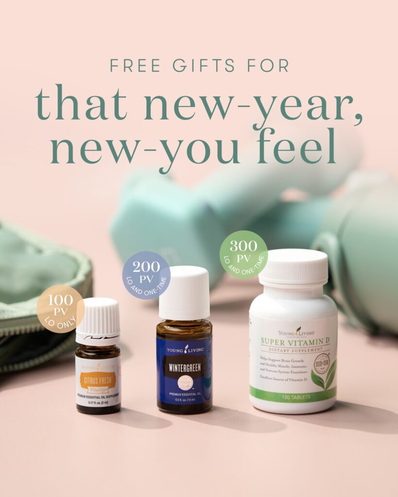 | January Gifts With Purchase 100 PV * Citrus Fresh EO Blend 5ml (Loyalty Order Bonus) Citrus Fresh™ Vitality™ combines Orange, Grapefruit, Mandarin, Tangerine, Lemon, and Spearmint essential oils, which contain antioxidants and provide cleansing properties when taken internally. TIP: This EO blend has so many citrus oils in it, which, citrus oils are like antidepressants. Plus it has Spearmint, which helps with fatigue and lifts your spirits. I will add this to my water and I love to diffuse it in my kitchen. It’s my happy oil. 200 PV * Wintergreen EO 15 ml Contains the naturally occurring constituent methyl salicylate, which is beneficial for use during soothing massage to cool fatigued muscles and joints when applied topically. TIP: This is one of the oils I use daily for muscle pain, inflammation and arthritis. It also helps alleviate bone pain. It’s a key ingredient in PanAway… A blend that I always have on hand for bumps and bruises, for myself or my grandchildren. If you get a bump, quickly put PanAway/Wintergreen on it so it will take down the inflammation and the bruising. Apply it every 30 mins and the pain and the bruise will subside quickly. 300 PV *Super Vitamin D 120 Tablets Super Vitamin D supports the body’s respiratory system, immune system, bone growth, muscle health and coordination, and mood and hormone function with vegan-friendly vitamin D with Melissa and Lime premium essential oils. TIP: I take this all year around, every morning. It helps me so much with emotional balance and it supports my nervous system. *These statements have not been evaluated by the Food and Drug Administration. Young Living products are not intended to diagnose, treat, cure, or prevent any disease. |